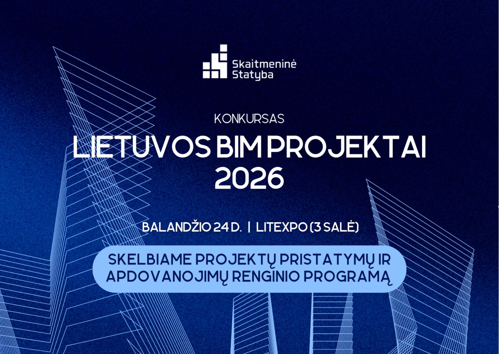Konkurso laureatai bus paskelbti ir apdovanoti renginio metu, o vėliau pristatyti konferencijoje „Skaitmeninė statyba 2026. Vilnius“.